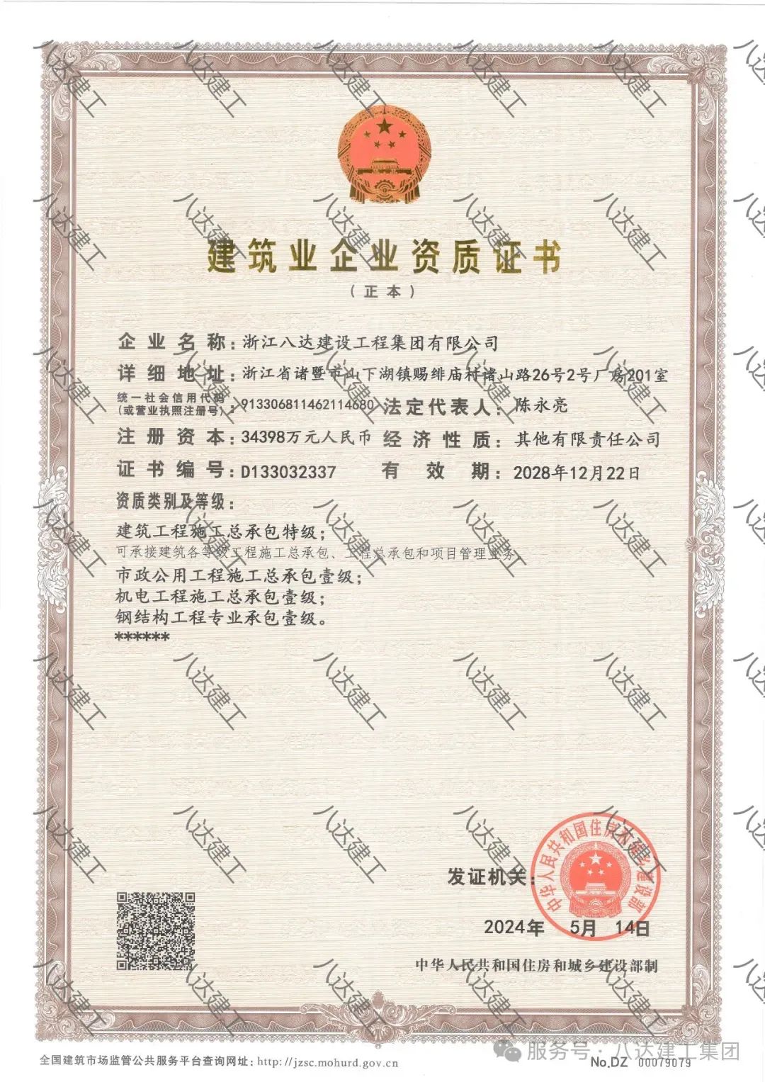 浙江八达建设工程集团有限公司 —— 以信立身,以质致远,诚邀合作